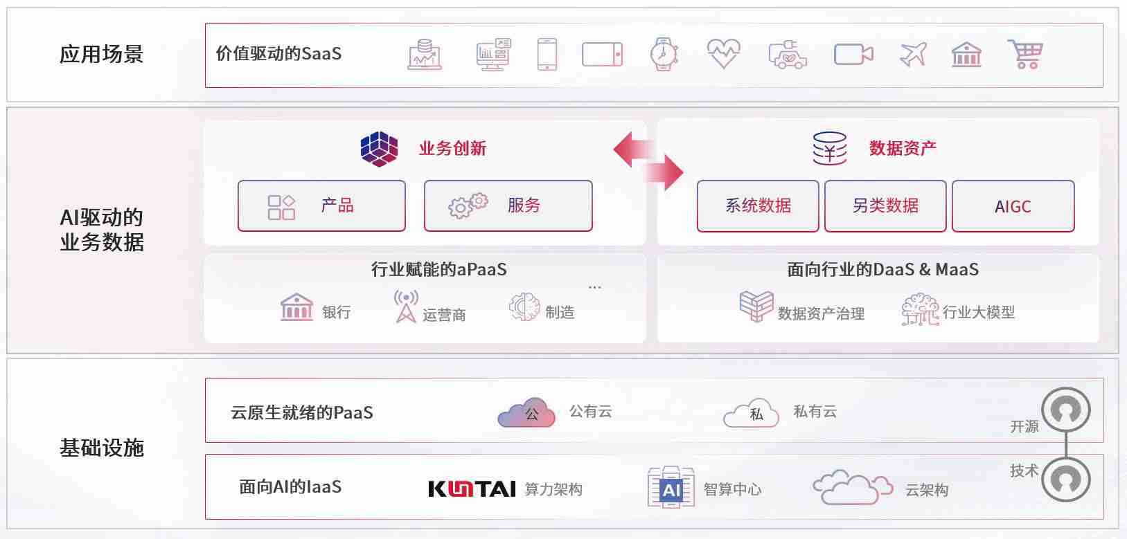 数字时代,,围绕企业数字化转型的关键要素,,,,EBpay数码开创性的提出数云融合战略和技术体系框架,,着力在云原生、、数字原生、、AI原生和信创产业上架构产品和服务能力,,,,为处在不同数字化转型阶段的快消零售、、、、汽车、、、金融、、、、医疗、、、、政企、、教育、、、运营商等行业客户提供泛在的敏捷IT能力和融合的数据驱动能力,,,,构建跨界融合创新的数字业务场景和新业务模式,,,助力企业级客户建立面向未来的核心能力和竞争优势,,,全面推动社会的数字化、、、、智能化转型升级。。。。